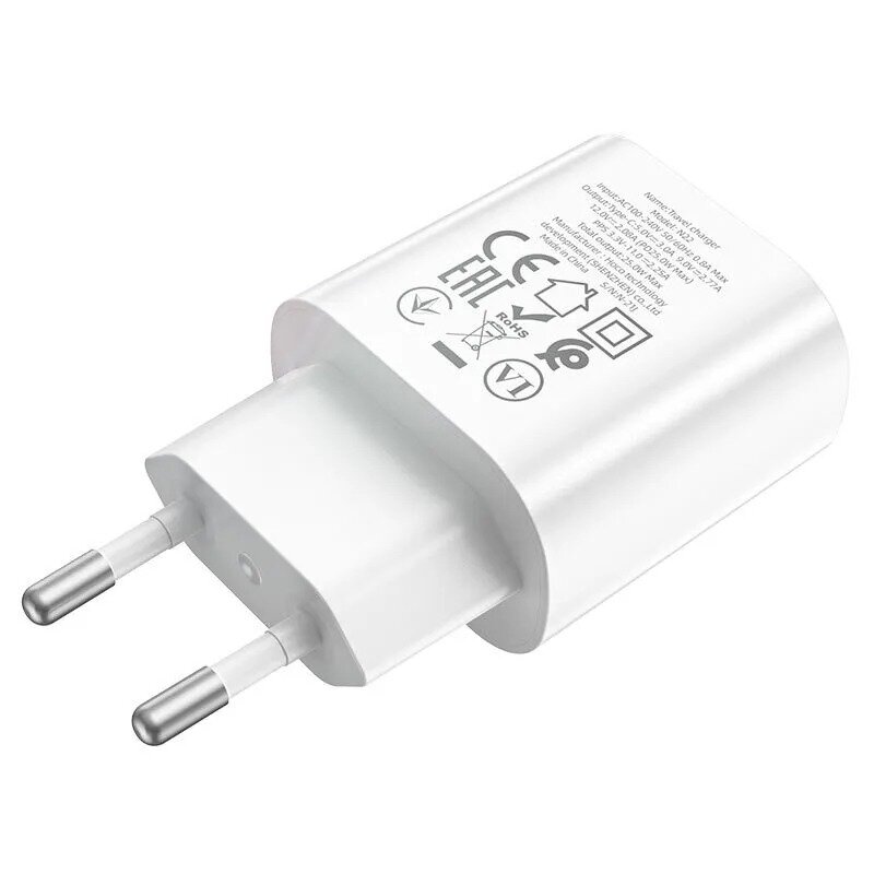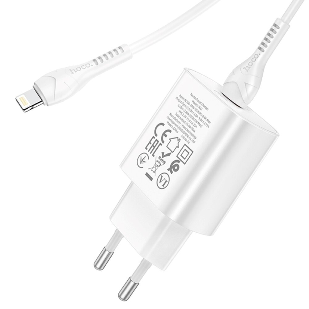 Купить Сетевое зарядное устройство, 1 PD 25W (N22), HOCO, Type-C to Lightning, Безопасный сертификат, белый