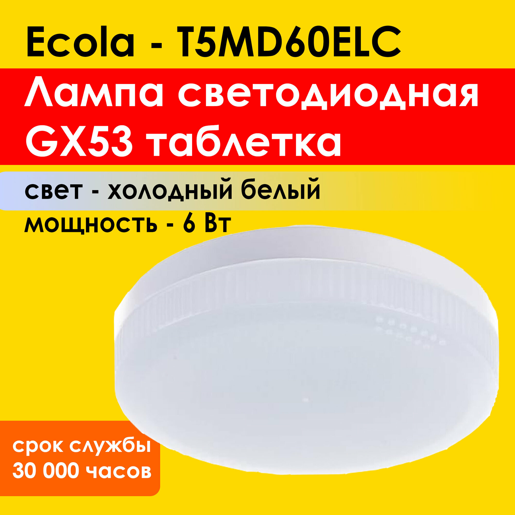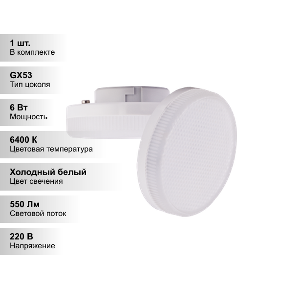 Светодиодная лампа 6,0W цоколь GX53 6400K T5MD60ELC 10шт.