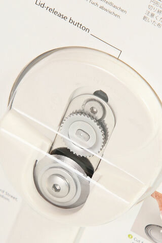 | Отзыв: | В исходном положении кнопка должна быть вдавлена. В момент начала поворота винта кнопка выскакивает наружу. Продолжаем легко вращать винт до полного круга - крышка снимается, но не падает. Интересная функция захвата снятой крышки. Чтобы освободить ее, надо нажать кнопку. То есть порезать пальцы невозможно!