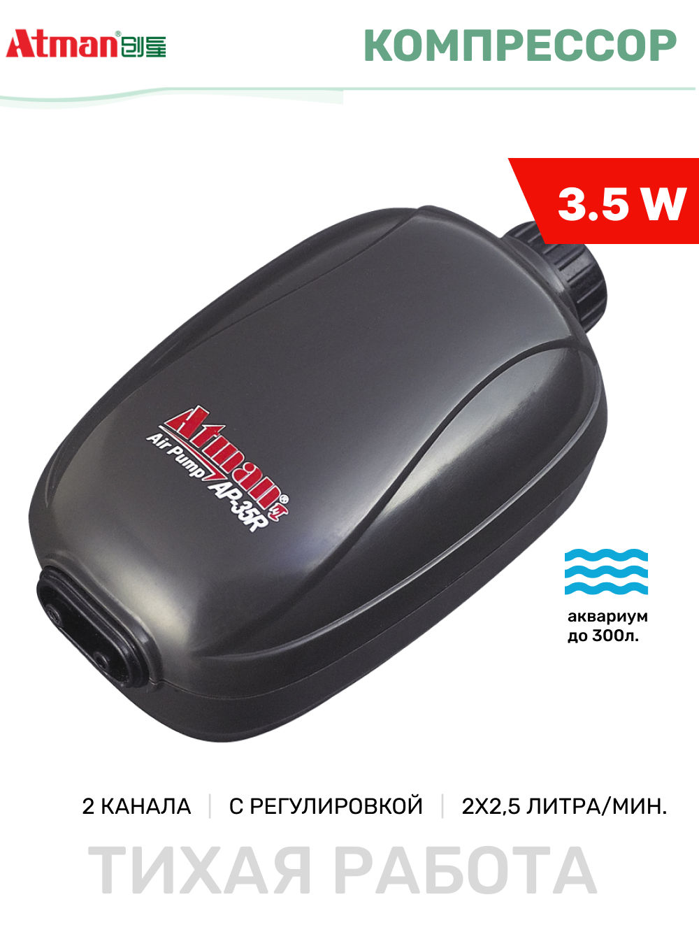 Компрессор Atman AP-35R для аквариумов до 300 литров, 2х150 л/ч, регулируемый интересное:
