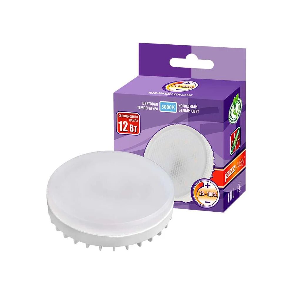 Лампа светодиодная LED-12w 5000K GX53 диммируемая Jazzway | код. 5018426 | JazzWay (3шт.в упак.)