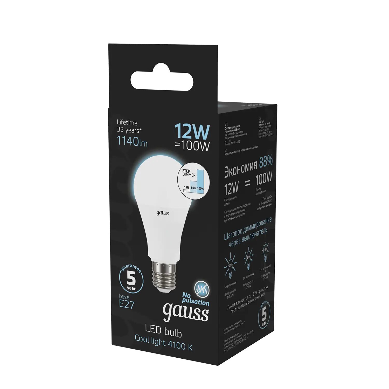 Набор из 10 штук Лампа Gauss A60 12W 1140lm 4100K Е27 шаг. диммирование LED 1/10/50 интересное: