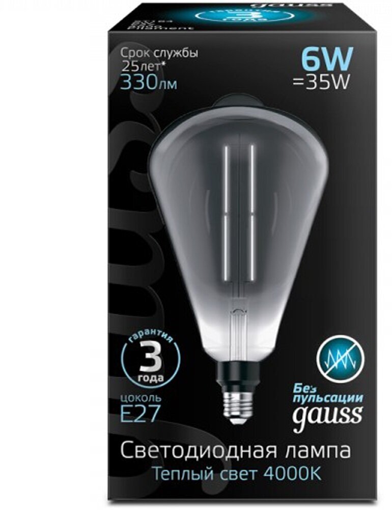 Лампа Gauss Filament ST164 6W 330lm 4000К Е27 gray straight LED 1/6 интересное: