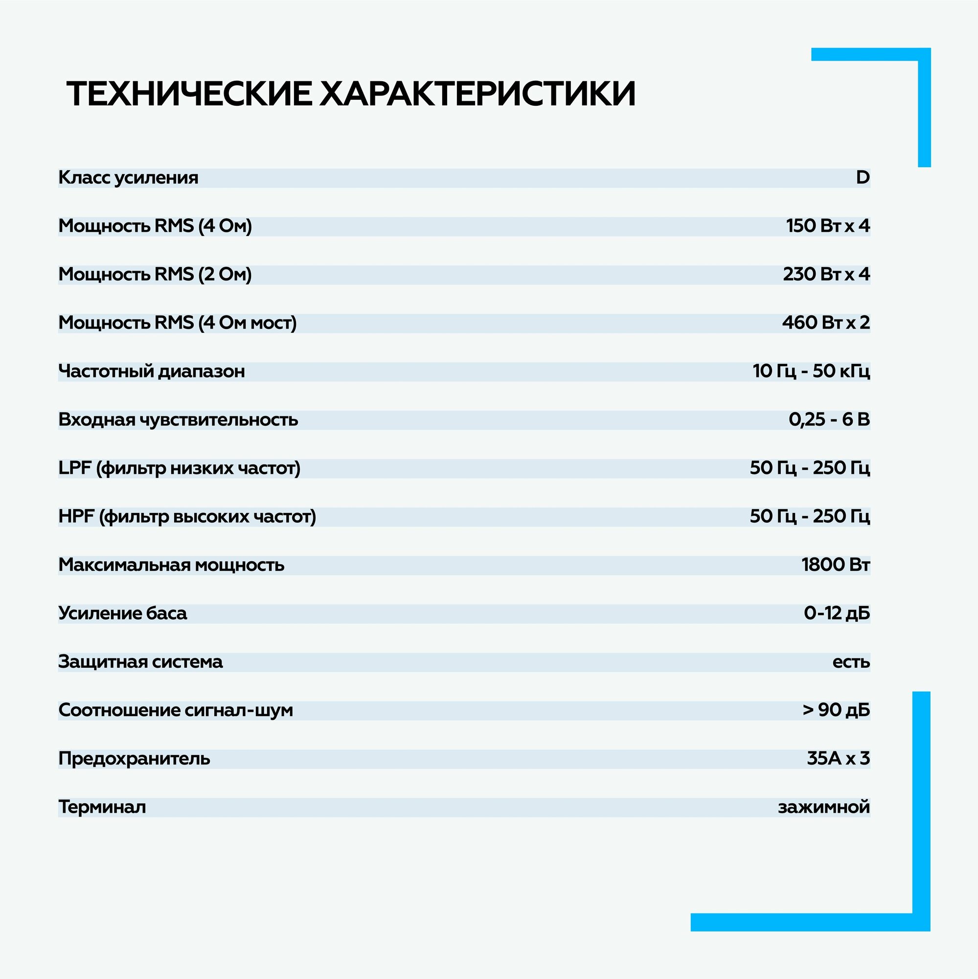| Мощность на канал (4 Ом) | 150 Вт |