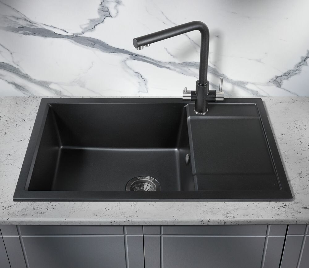 Мойка для кухни MILACIO Navarra 78 Cuarzo (MC.77051), черный матовый