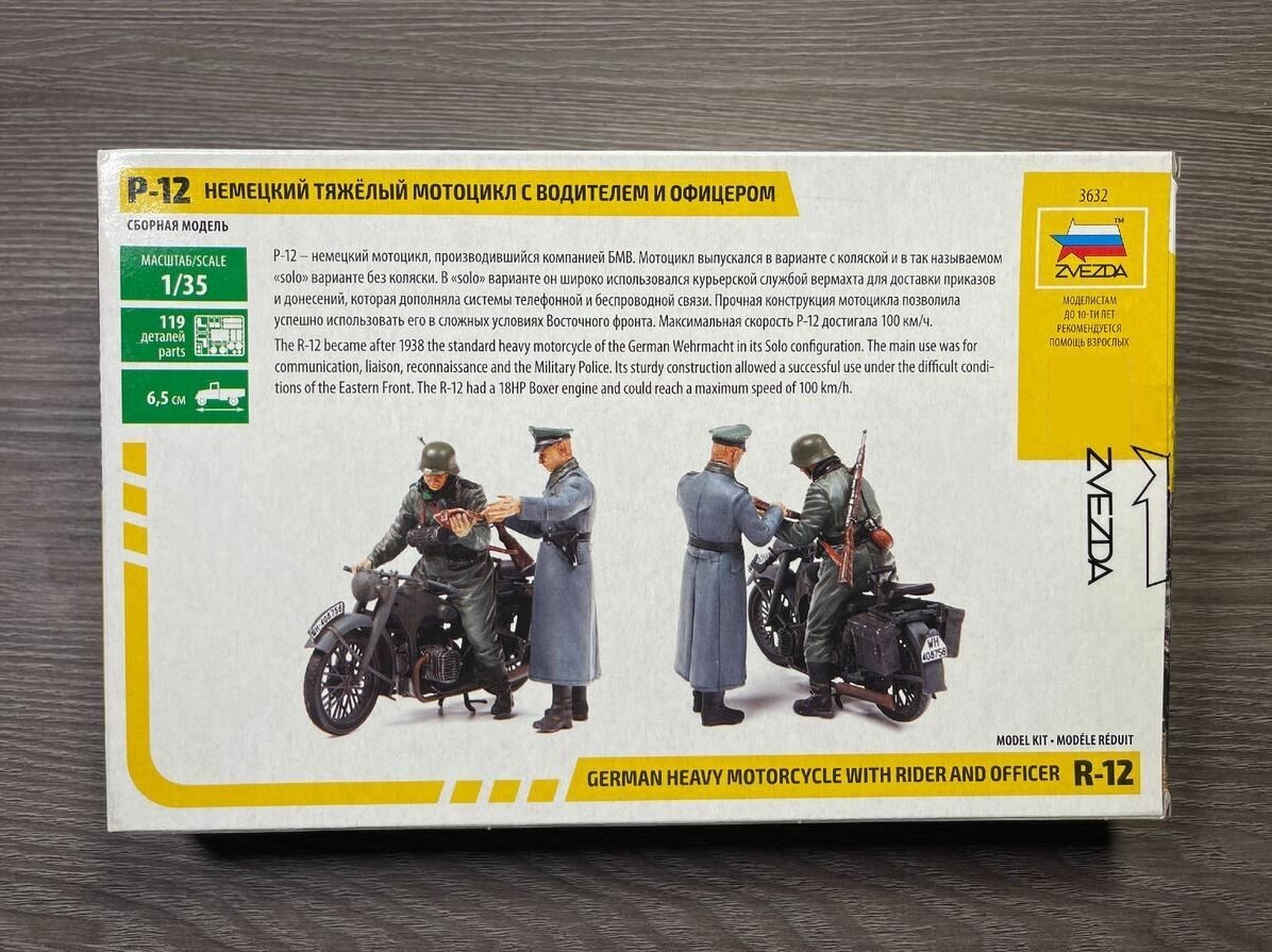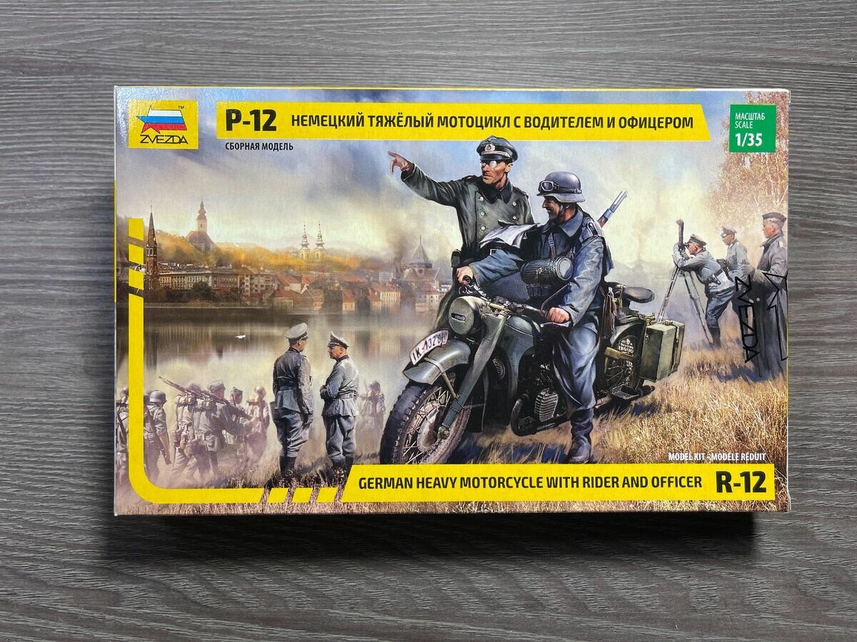 Ниже Вы можете прочитать отзывы на Сборная модель ZVEZDA Немецкий тяжелый мотоцикл Р-12 с водителем и офицером, 1/35, ознакомится с подробными характеристиками, посмотреть интересные обзоры и фотографии на Сборная модель ZVEZDA Немецкий тяжелый мотоцикл Р-12 с водителем и офицером, 1/35.