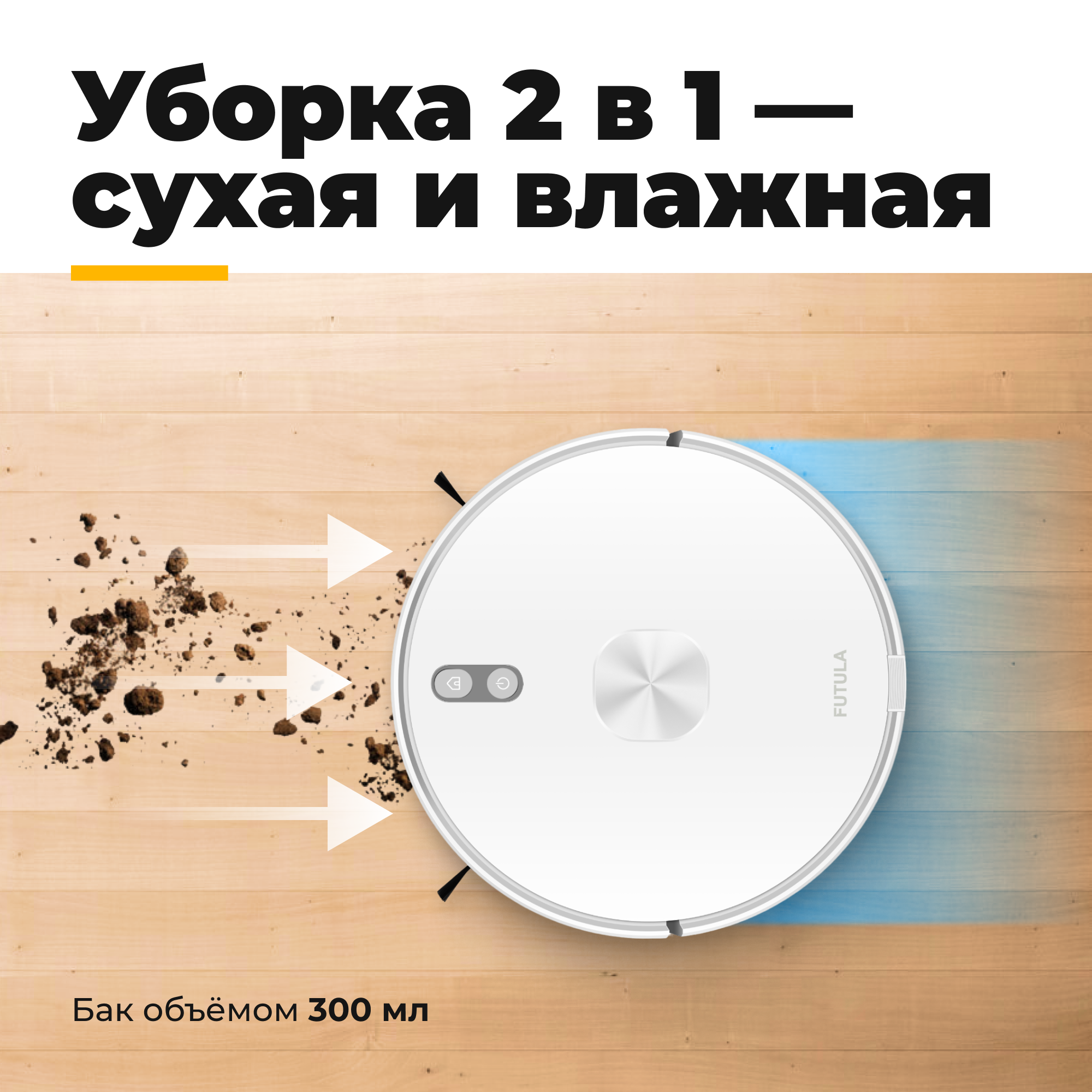 Робот-пылесос Futula Robot Vacuum Cleaner and Mop G10 белый, сухая/влажная уборка, управление через смартфон