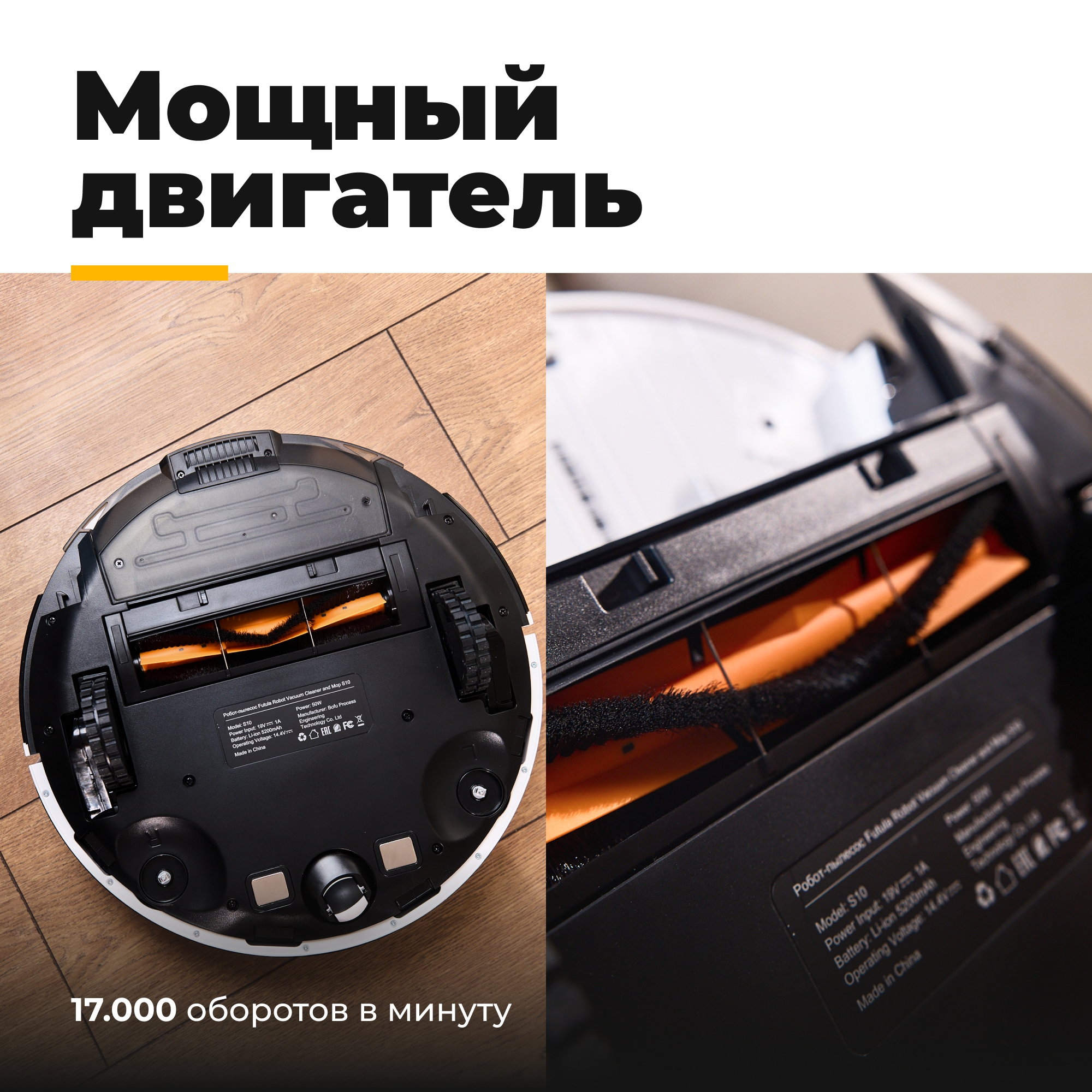 Робот-пылесос Futula Robot Vacuum Cleaner and Mop S10 черный, с управлением через смартфон, мощный и компактный, сухая и влажная уборка, Hepa фильтр