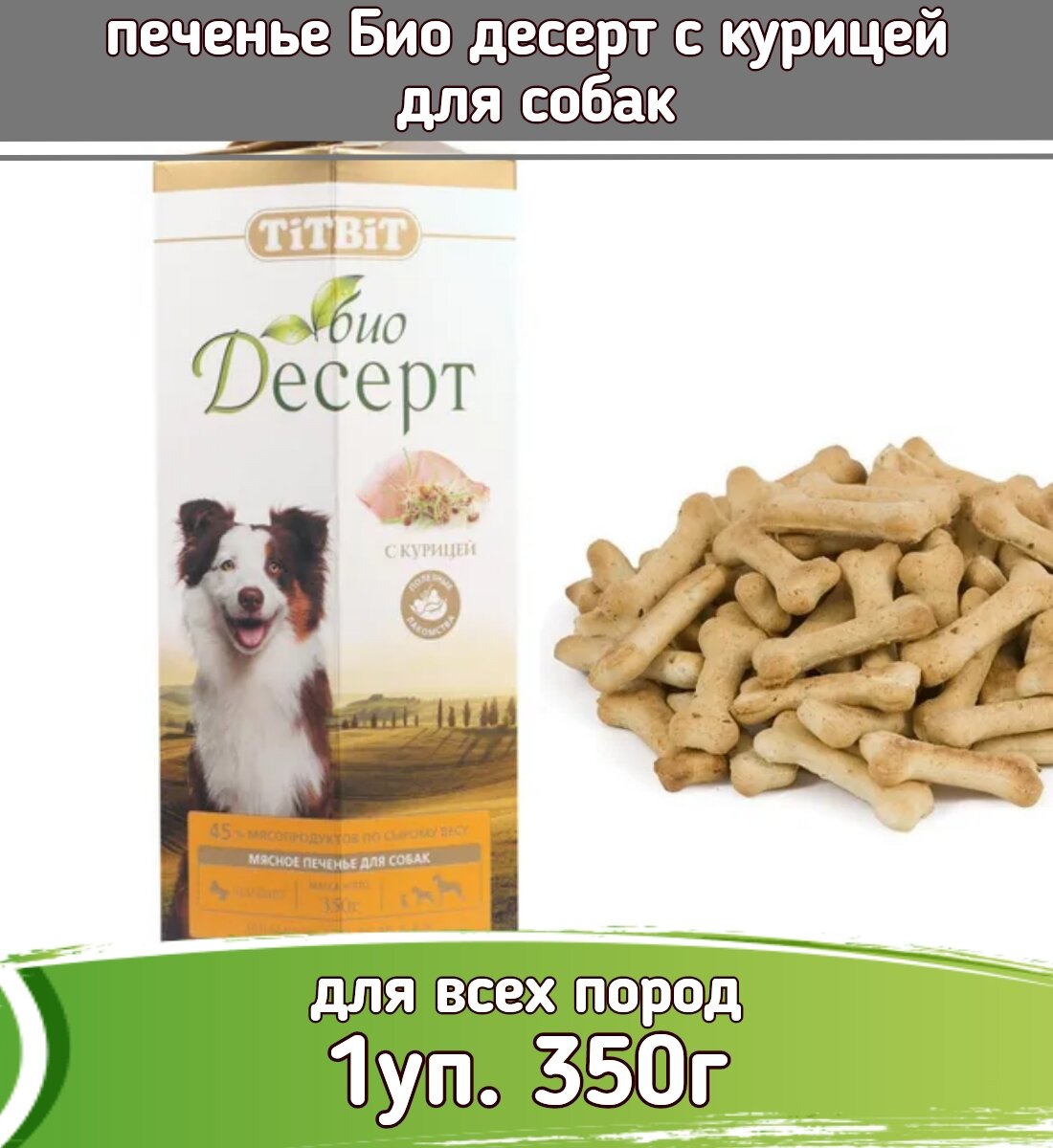 Ниже Вы можете прочитать отзывы на TIT BIT Био-десерт печенье с курицей стандарт д/собак 350г, ознакомится с подробными характеристиками, посмотреть интересные обзоры и фотографии на TIT BIT Био-десерт печенье с курицей стандарт д/собак 350г.