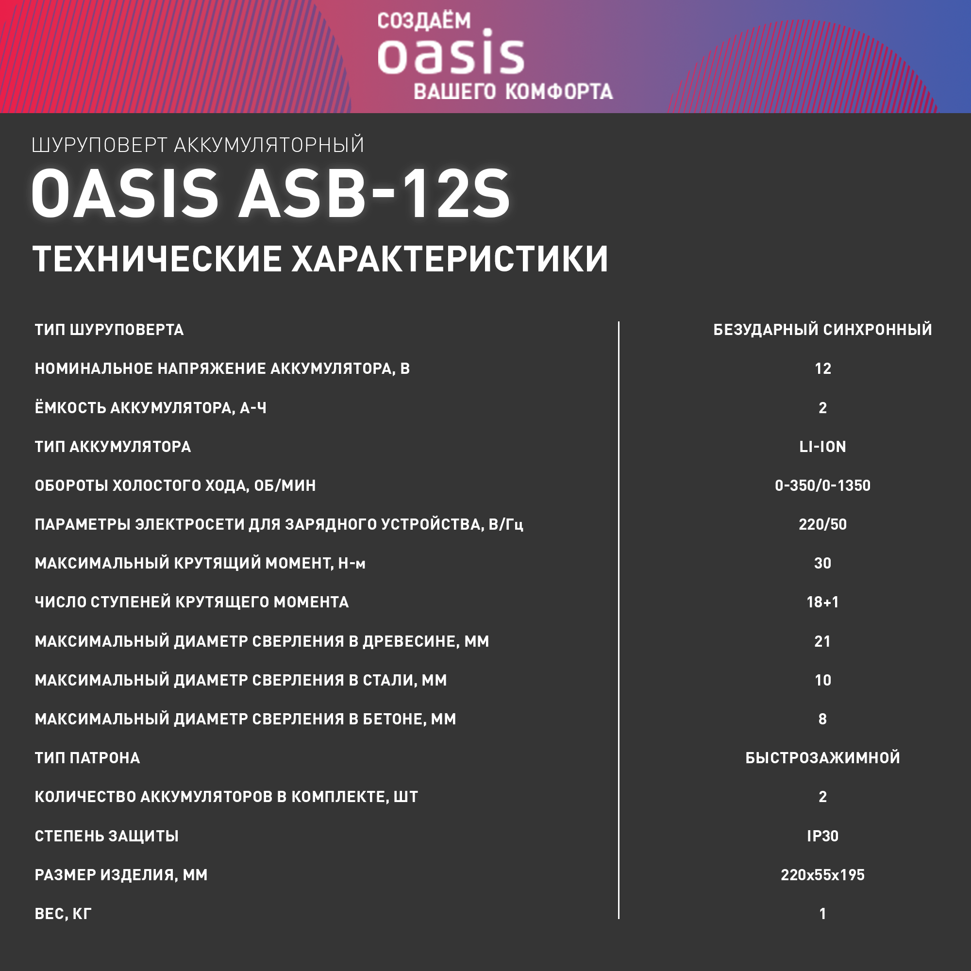 Аккумуляторный шуруповерт Oasis ASB-12S /J/ 201 интересное: