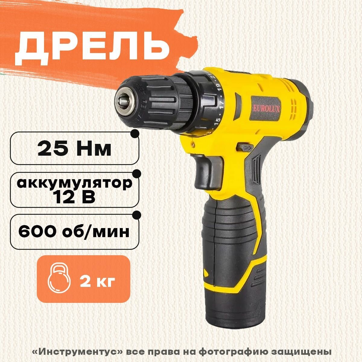 Купить Шуруповерт - дрель аккумуляторная ДА-12/1Li Eurolux быстрозажимной, 600 об/мин, 25/13 Нм, 12В, 1,5 А*ч)