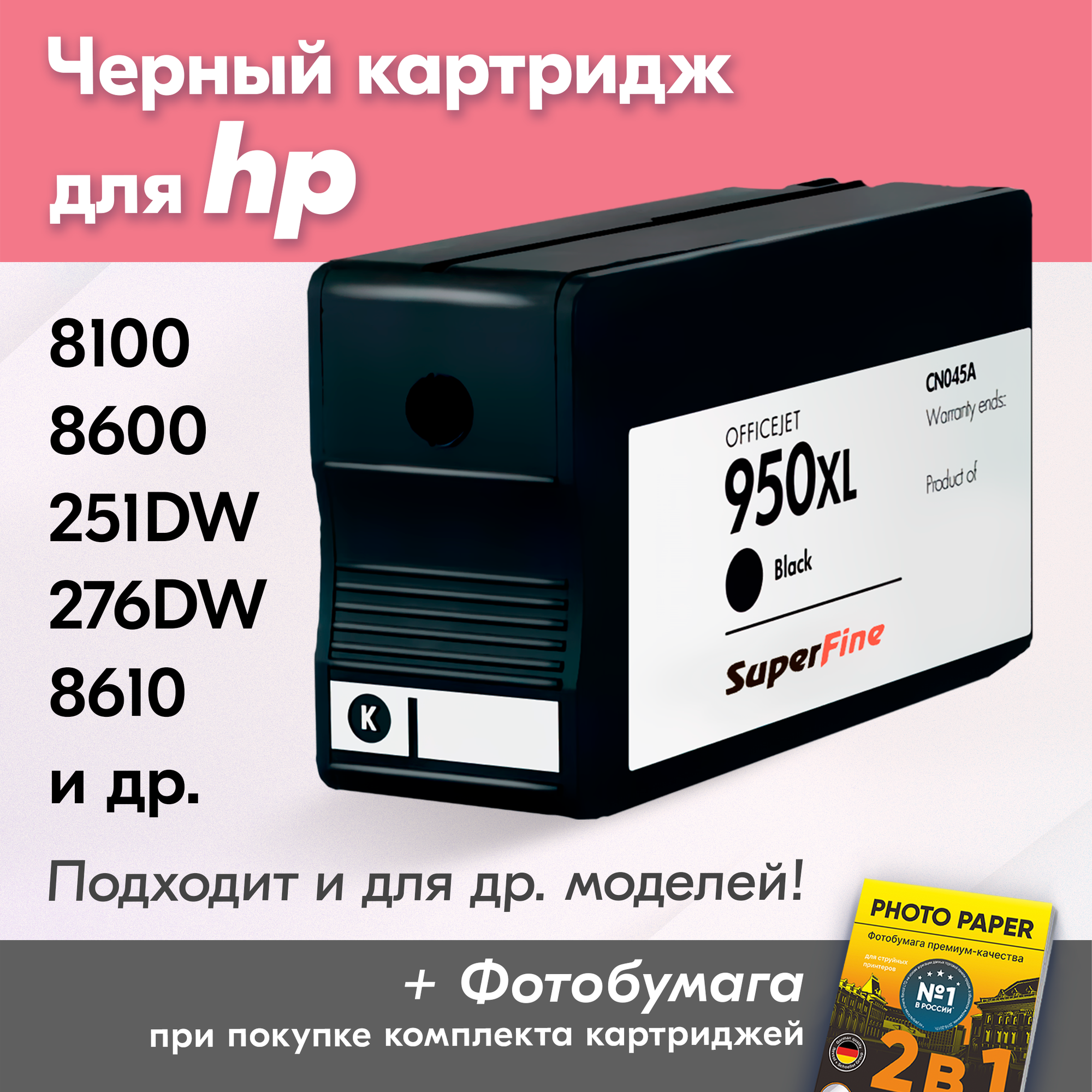 СохранитьКартридж для HP 950XL, HP Officejet Pro 8100, 8600, 8600 Plus, 251dw, 276dw и др. с чернилами черный новый заправляемый интересное: