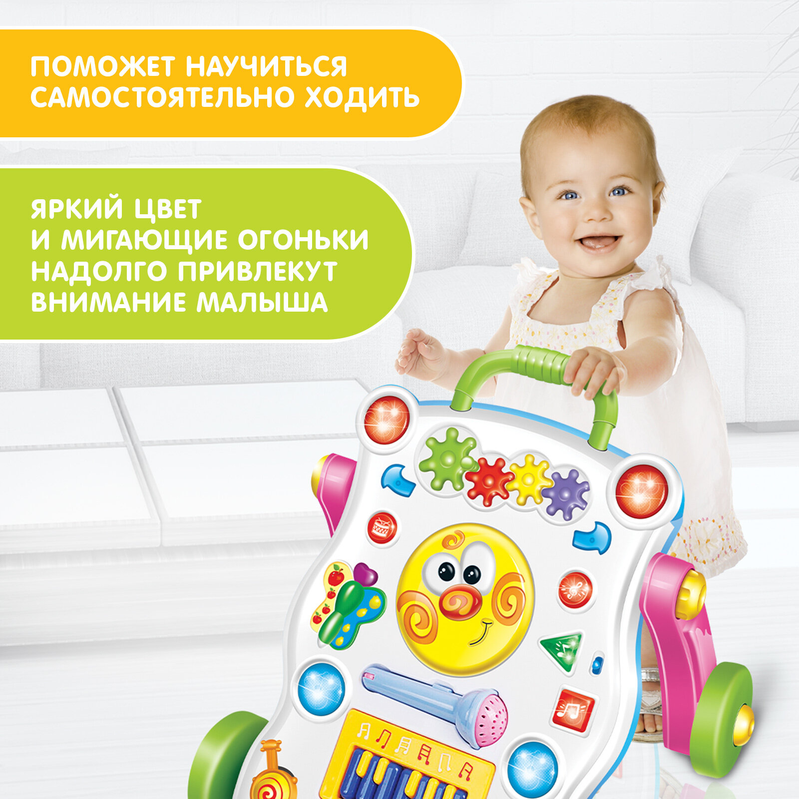 Купить Развивающая каталка-ходунки "Первые шаги" с ручкой для дома и улицы, детский игровой центр со световыми и звуковыми эффектами