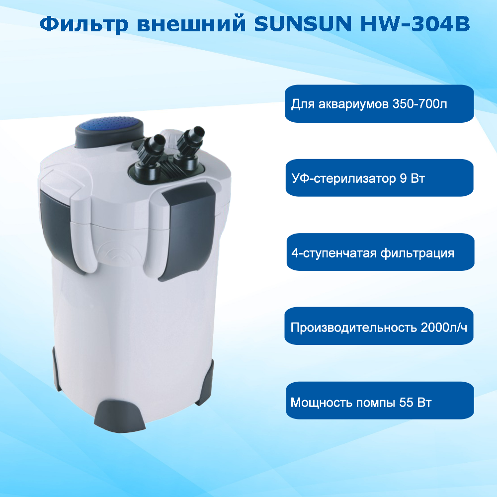 Внешний фильтр SUNSUN HW-304B с УФ-стерилизатором для аквариумов 350-700 литров интересное: