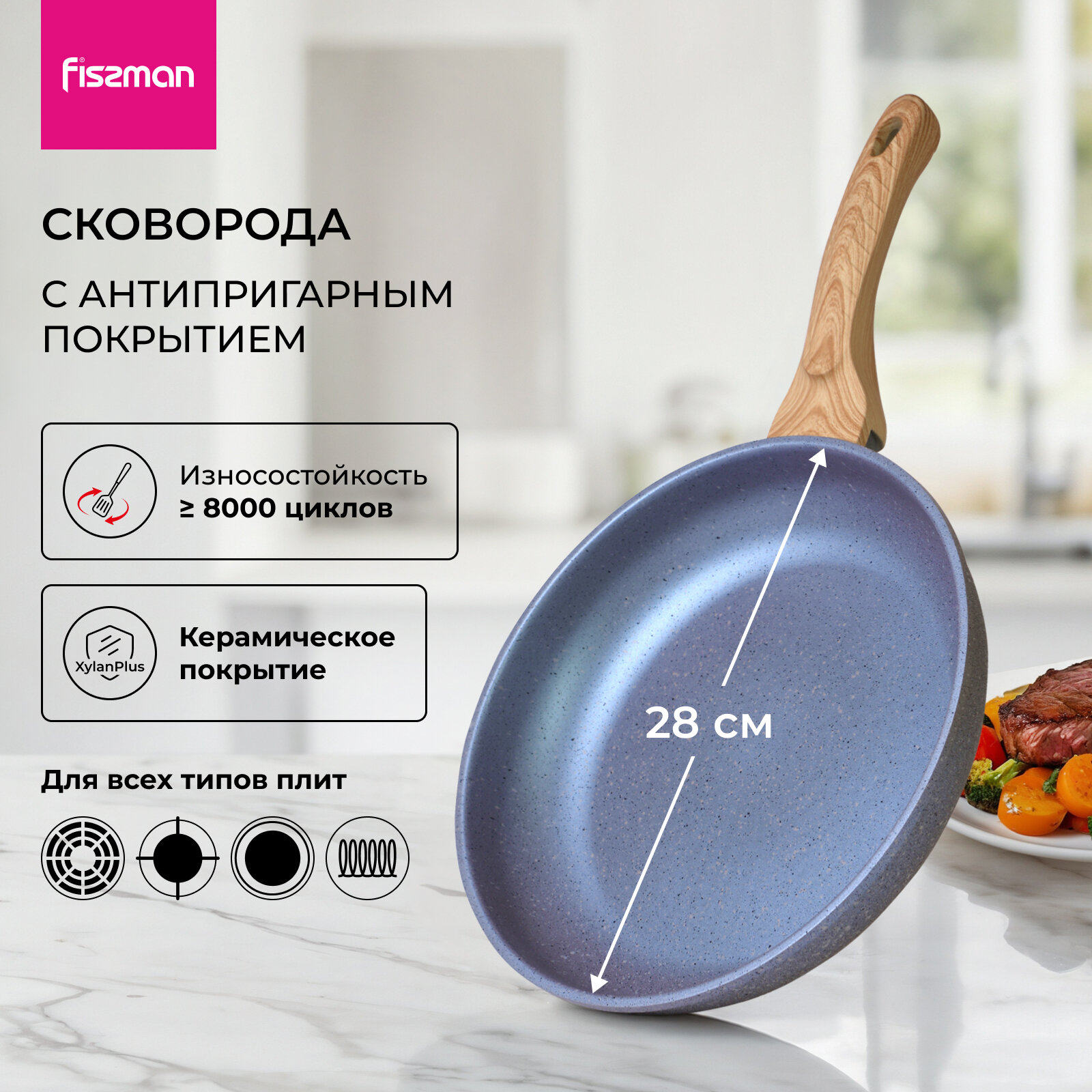 Купить Сковорода антипригарная 28 см Fissman Natura, подходит для индукционных плит