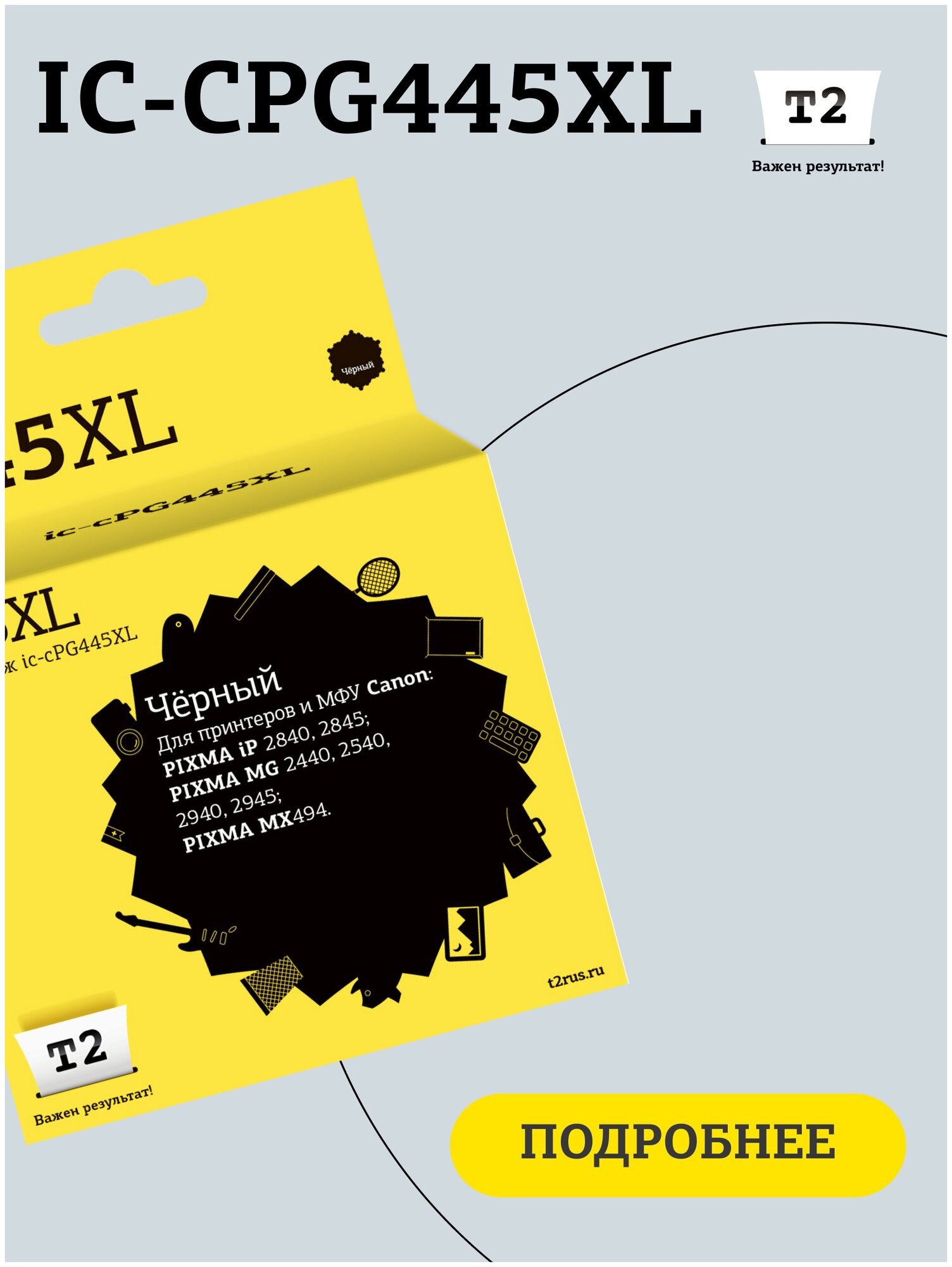 IC-CPG445XL Картридж T2 для Canon PIXMA iP2840/2845/MG2440/2540/2940/2945/MX494, черный