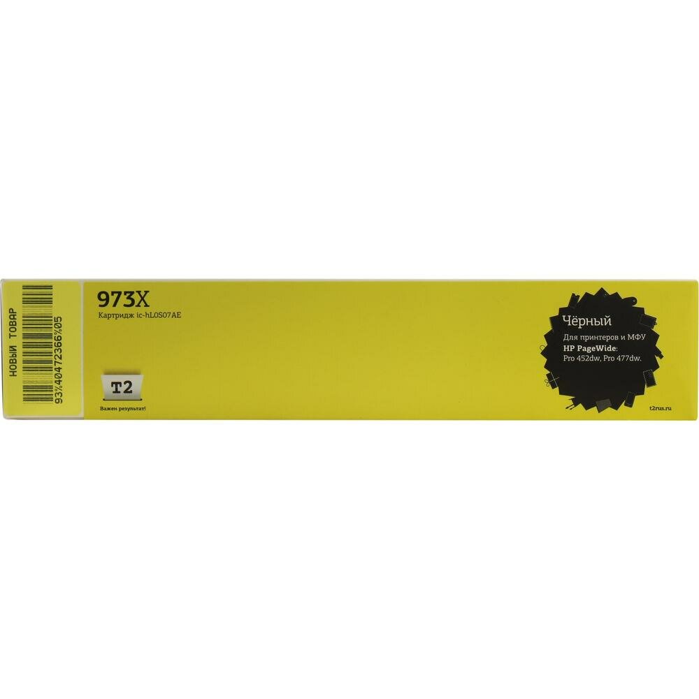 T2 Расходные материалы IC-HL0S07AE Картридж 973X IC-HL0S07AE для HP PageWide Pro 452dw Pro 477dw, черный, с чипом, пигментный