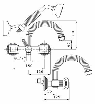Смеситель для ванны с душем Cezares APHRODITE V 03 24 S1
