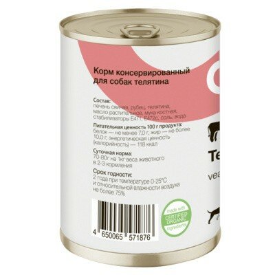 Корм Organix (консерв.) для собак, с телятиной, 410 г x 15 шт