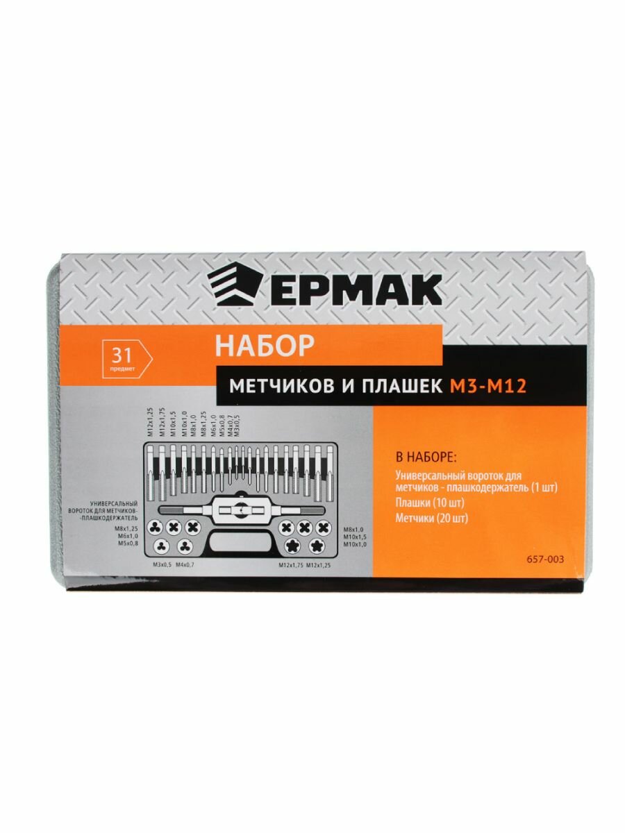 Ермак Набор метчиков и плашек 31пр. М3-М12 657-003