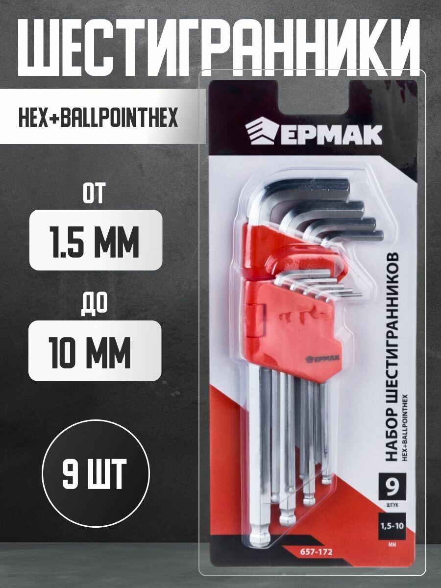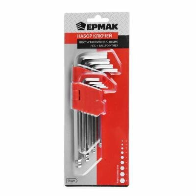 Набор шестигранников HEX+BallpointHex, 9 шт (1.5-10мм) Ермак интересное: