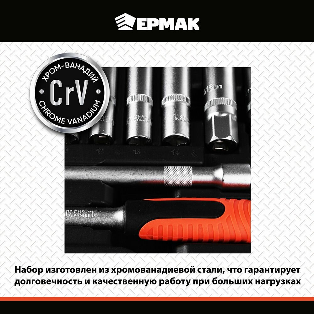 Набор слесарных инструментов Ермак, 736-091, 3/8", 6-гранные, сталь, кейс, 30 предметов