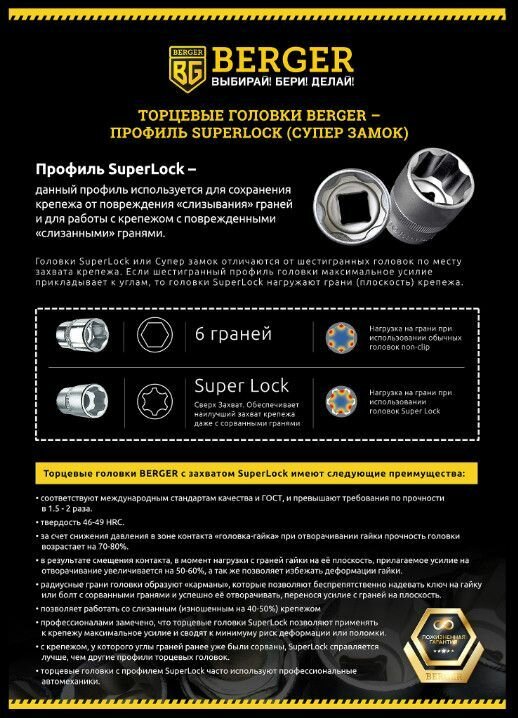 СохранитьНабор головок торцевых удлиненных BERGER BG2037 1/2" SuperLock 17 предметов (8-32мм) подвес интересное: