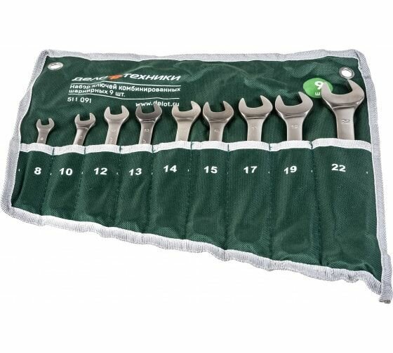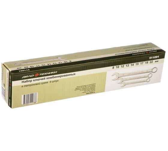 Набор рожково-накидных ключей ( 9 предметов) "Дело Техники" (в чехле; 8,10,12,13,14,15,17,19,22 мм) дело техники 511091 | цена за 1 шт