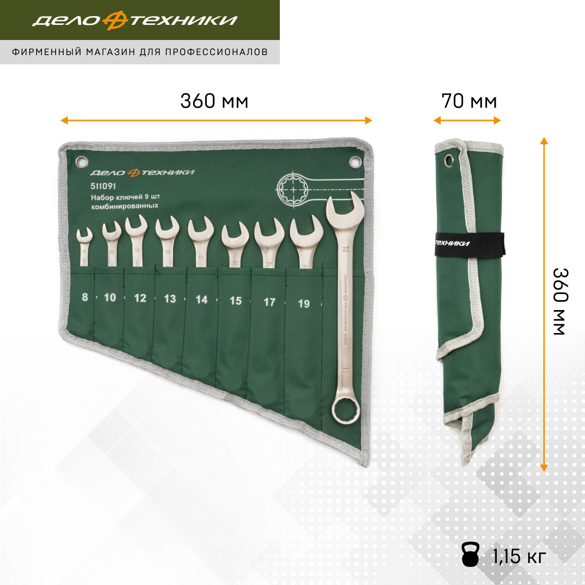 Дело Техники Набор ключей комбинированных - 9 шт. 8,10,12,13,14,15,17,19,22 тетрон. сумка "ДТ"/10 511091