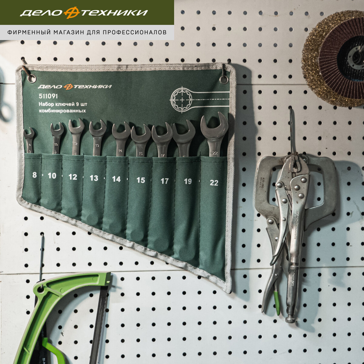 Набор ключей комбинированных 9 шт. (8,10,12,13,14,15,17,19,22 мм) планшет тетрон. Дело техники 511091 | цена за 1 шт