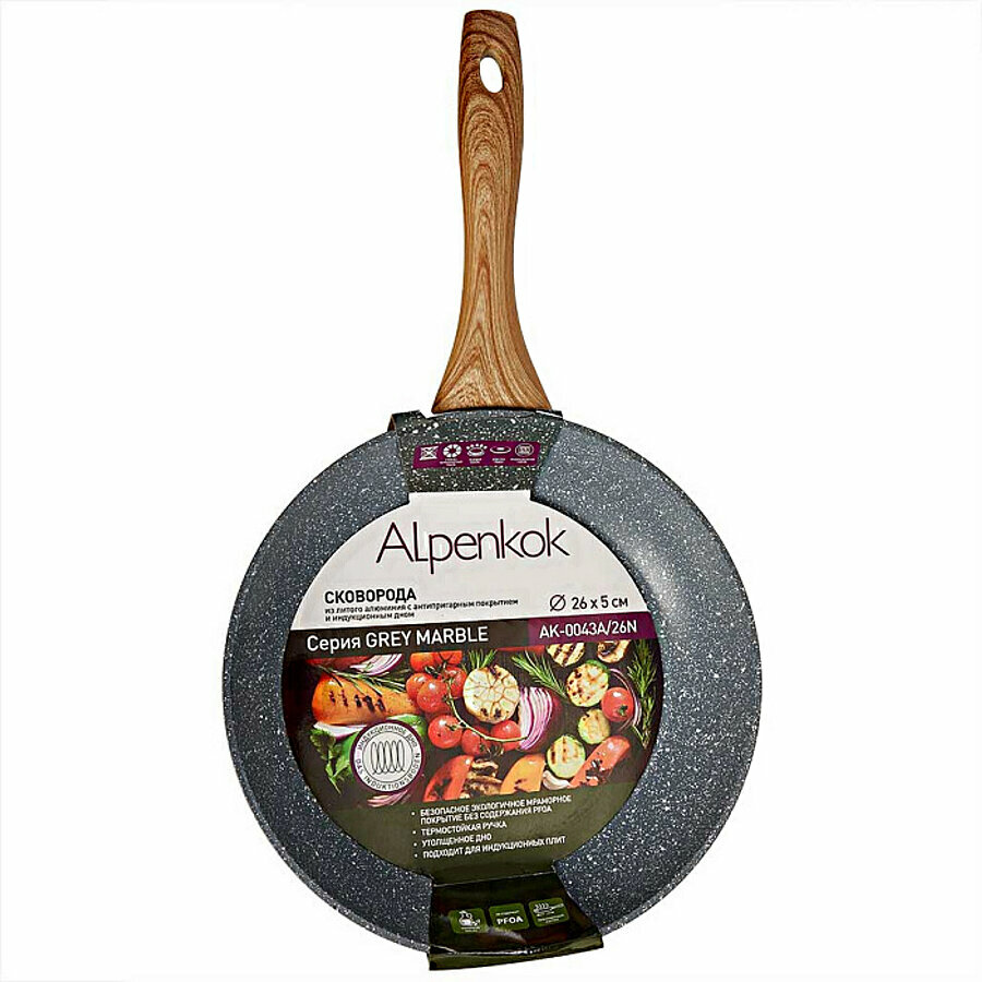 ALPENKOK AK-0043A/26N Сковорода алюмин.,индукция,антипригар. покрытие "GREY MARBLE",d=26см(6)