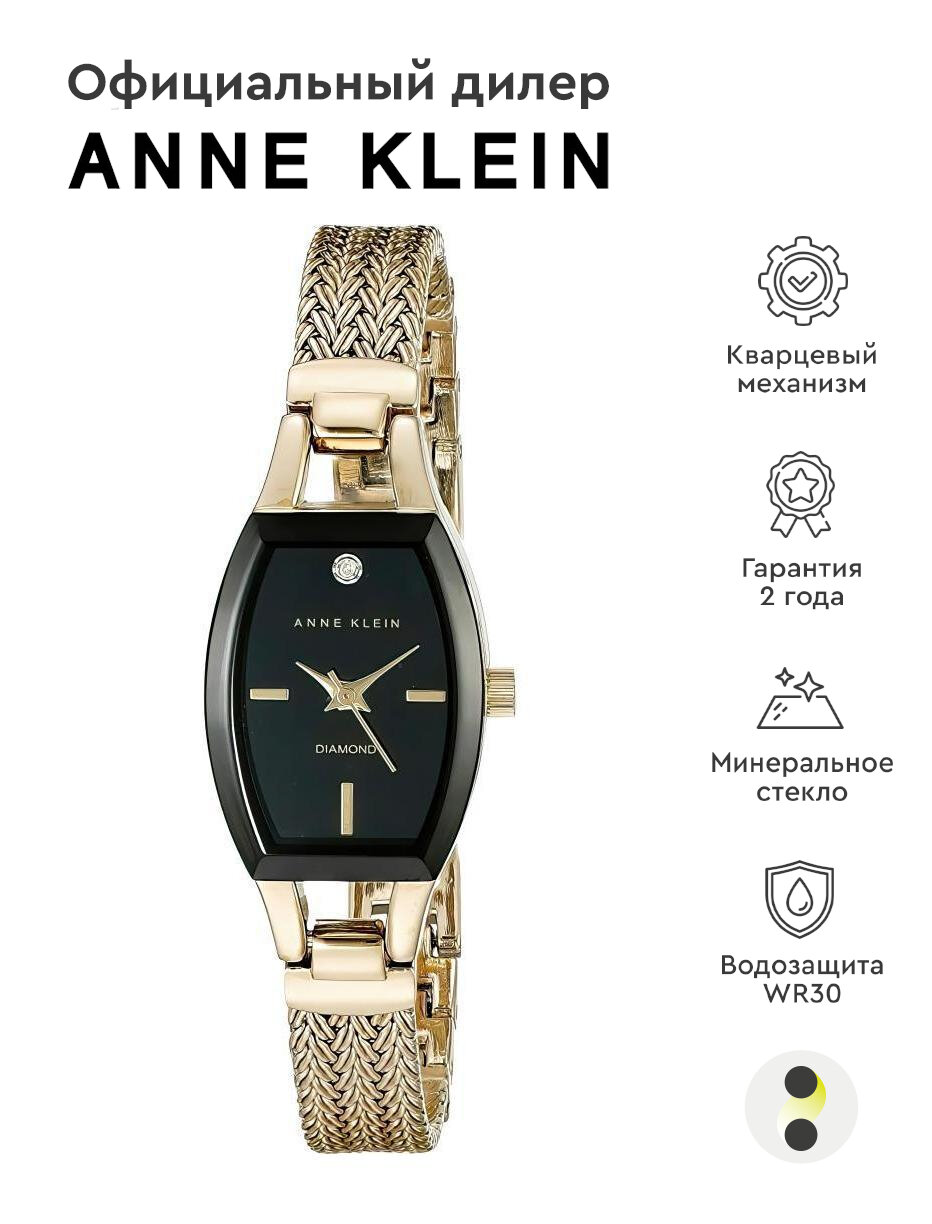 Наручные часы ANNE KLEIN 2184BKGB женские, кварцевые, водонепроницаемые, золотой