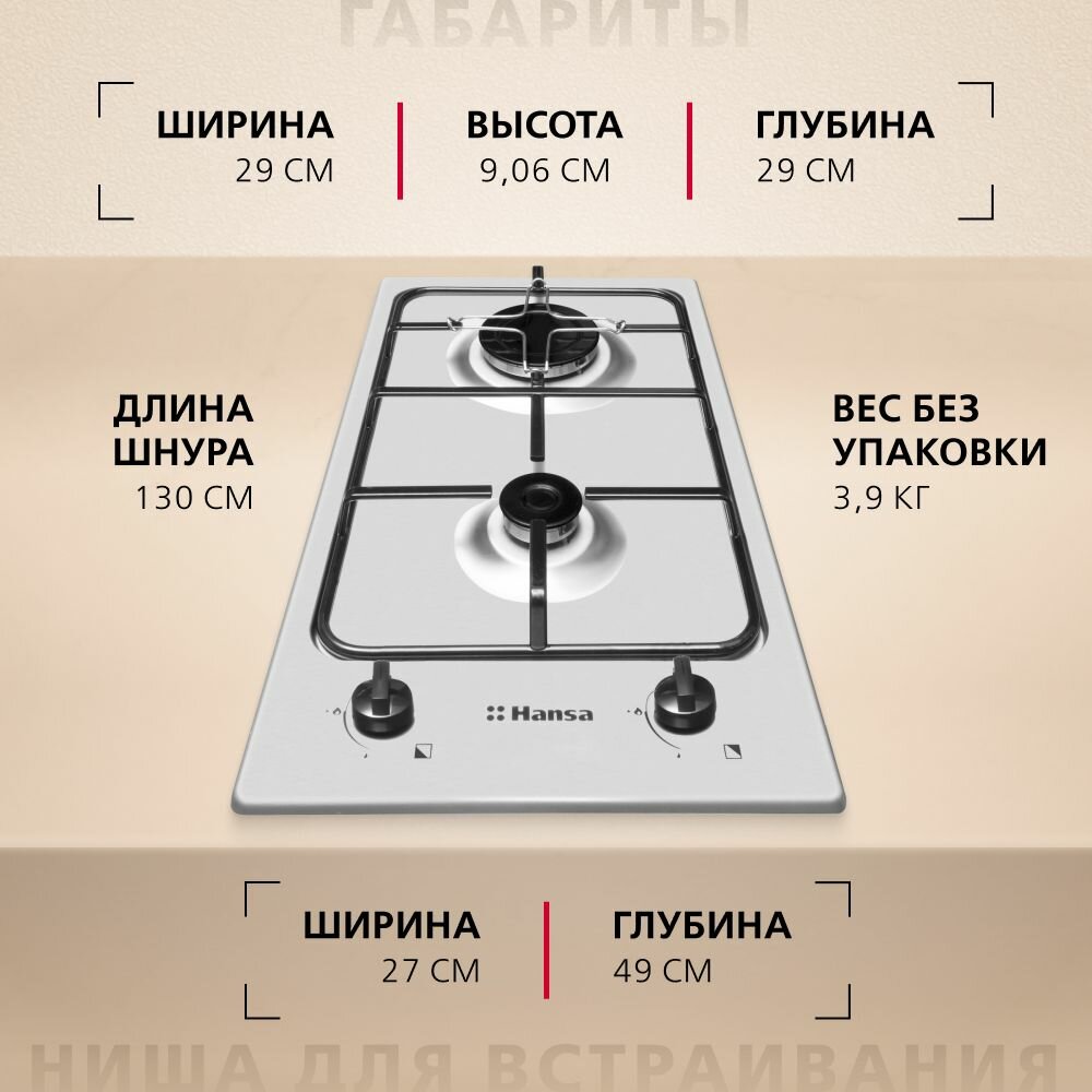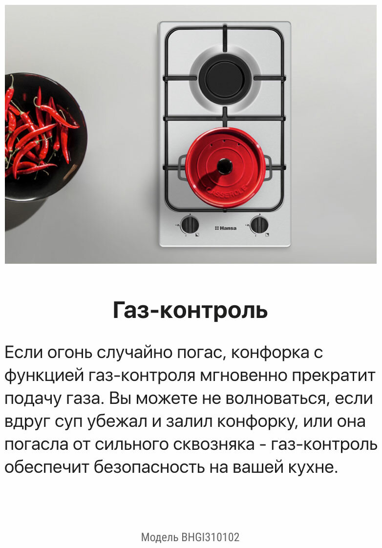 СохранитьГазовая варочная поверхность Hansa BHGI310102, двухконфорочная, с газ-контролем и автоподжигом, цвета нержавеющей стали интересное: