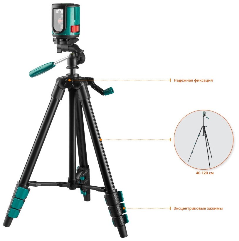 | Дополнительная информация | класс защиты IP54, чехол в комплекте; количество секций штатива: 4; максимальная высота штатива: 1.2 м |
