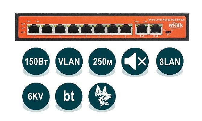 WI-PS210G коммутатор 10 портовый, неуправляемый Wi-Tek PoE с функцией PoE интересное: