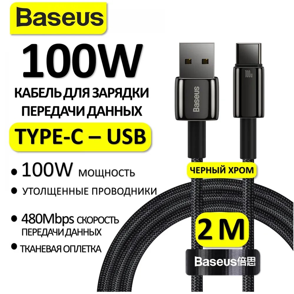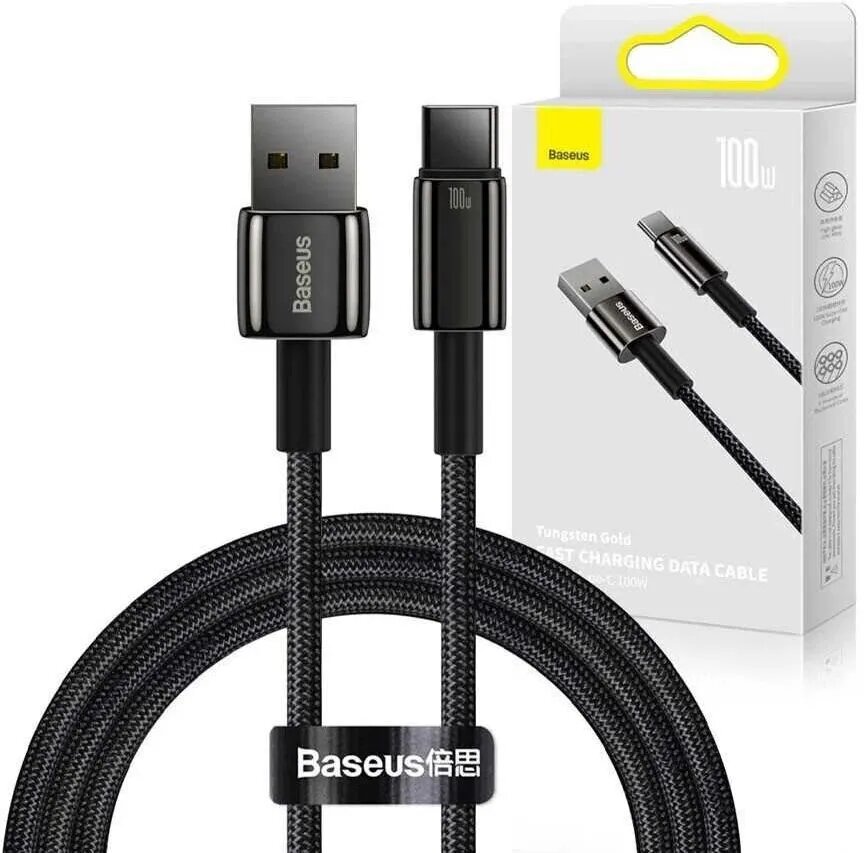 Купить Кабель Baseus Tungsten Gold Fast Charging Data Cable USB to Type-C 100W 2m Black (CAWJ000101)