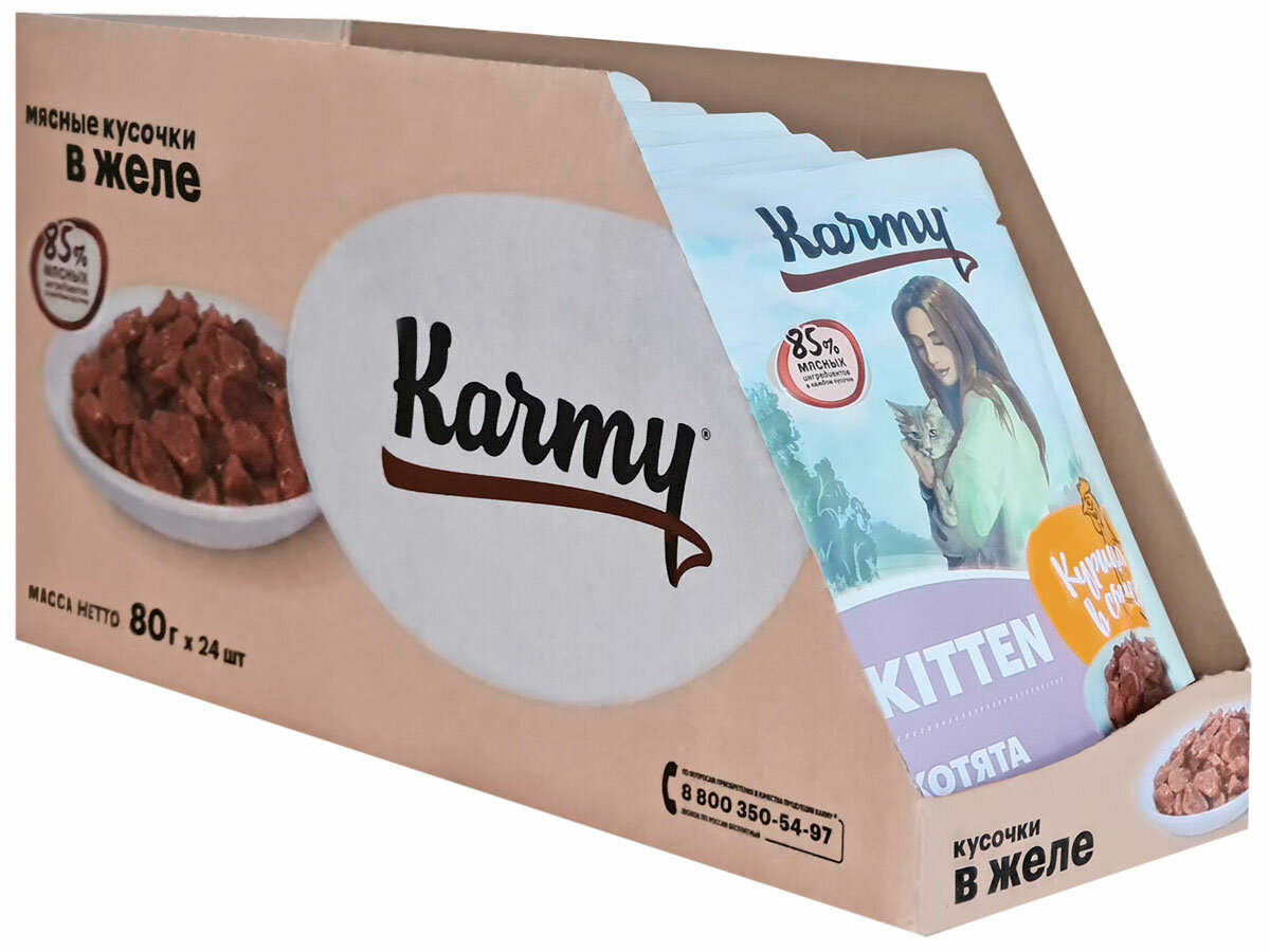 Купить KARMY KITTEN для котят с курицей в желе (80 гр х 24 шт)
