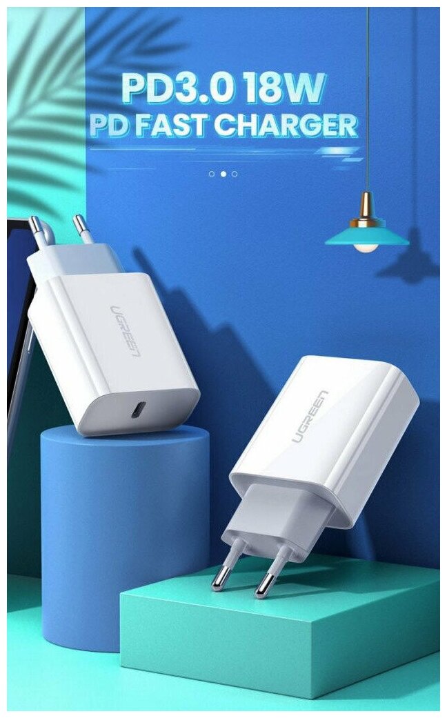 Зарядное устройство UGREEN CD137 Fast Charging Power Adapter With PD 20W EU