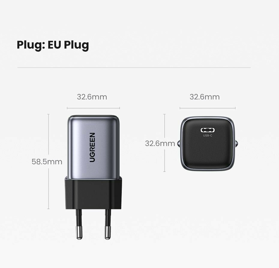 Сетевое зарядное устройство UGREEN X703 (35006) Nexode Pro 30W PD GaN Tech Charger EU. Цвет: серый