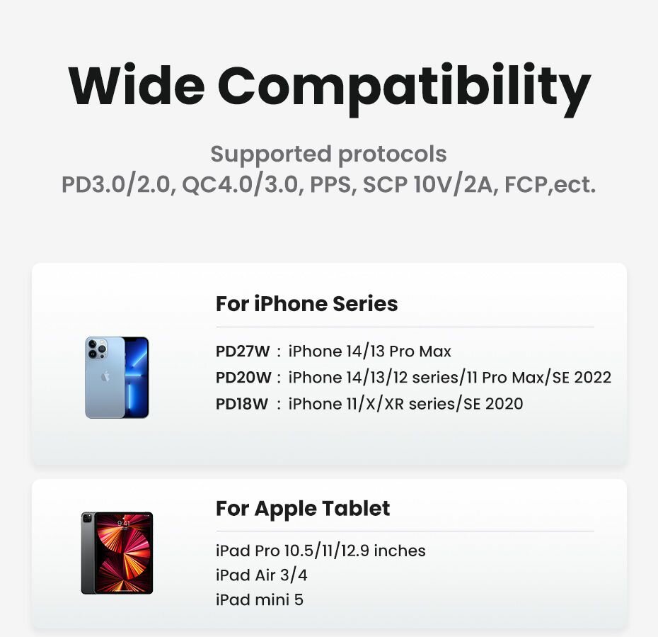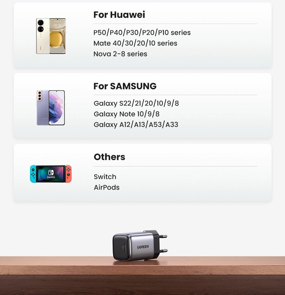 Зарядное устройство UGREEN CD137 Fast Charging Power Adapter With PD 20W EU