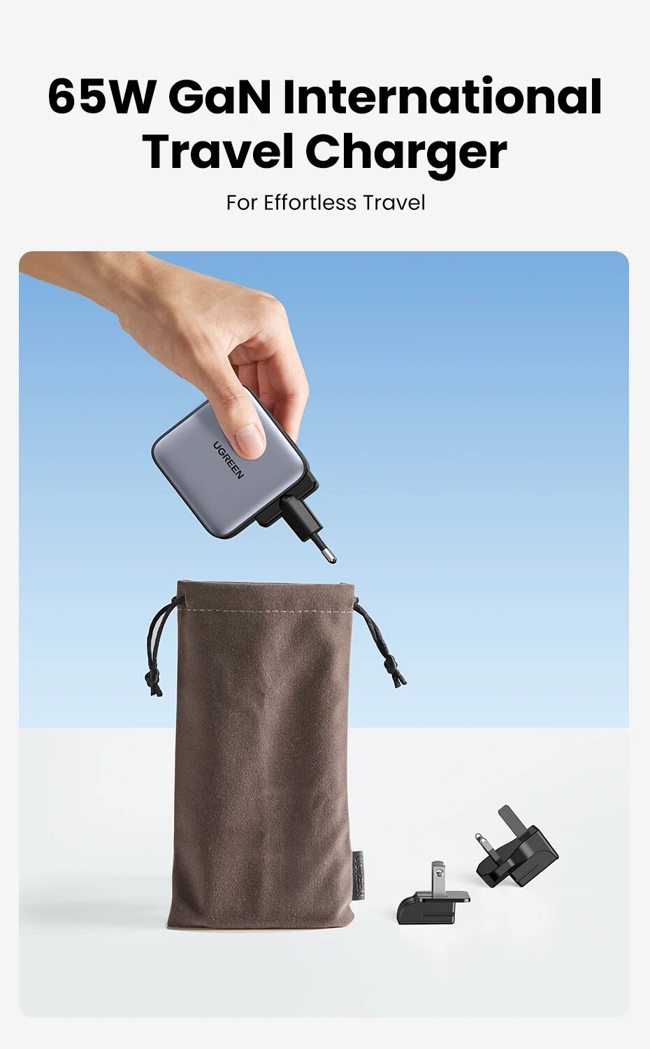 Сетевое зарядное устройство UGREEN CD224 (70774) 65W Wall Charger (3C1A) EU. Цвет: черный