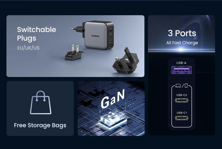Ниже Вы можете прочитать отзывы на Сетевое зарядное устройство Ugreen CD296 (90409) Nexode 65 Вт, USB-A + 2xUSB-C, серый, ознакомится с подробными характеристиками, посмотреть интересные обзоры и фотографии на Сетевое зарядное устройство Ugreen CD296 (90409) Nexode 65 Вт, USB-A + 2xUSB-C, серый.