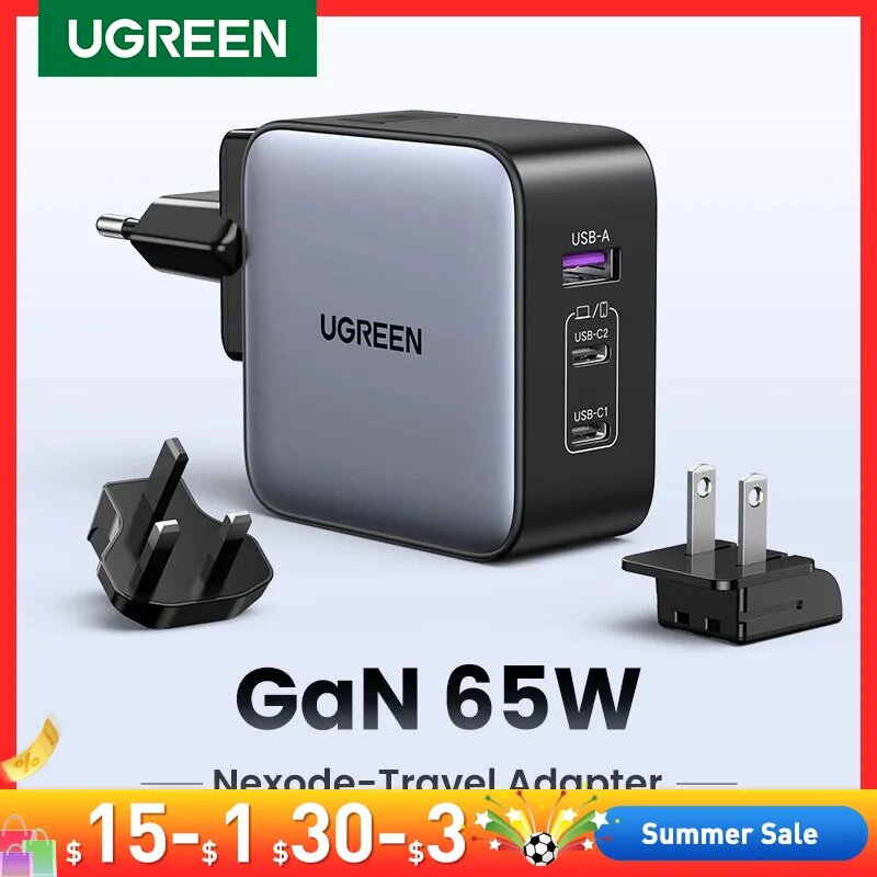 СохранитьСетевое зарядное устройство Ugreen CD296 (90409) Nexode 65 Вт, USB-A + 2xUSB-C, серый интересное:
