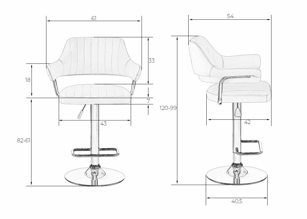 | Дополнительная информация | максимальная высота сиденья 84 см, диаметр основания 41 см, высота спинки 27 см |