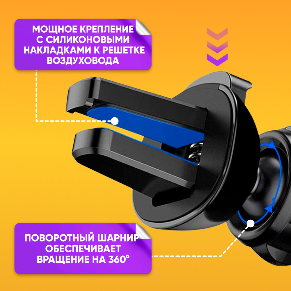 Автомобильный держатель для телефона смартфона HOCO CA103 в решетку вентиляции черный