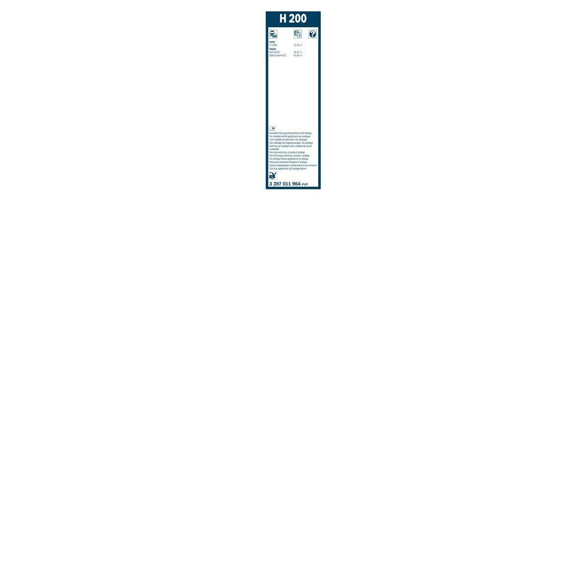 Стеклоочиститель BOSCH H200. 200 мм, задний, 3397011964