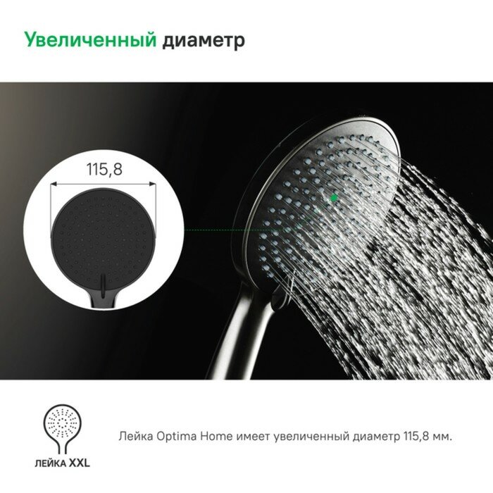 Лейка для душа, черная матовая, Optima Home, IDDIS, OPH1FB9i18