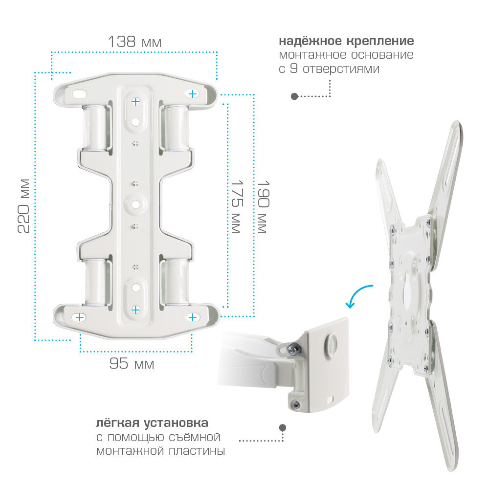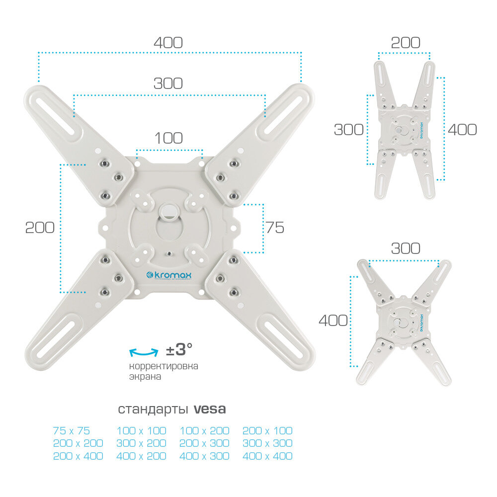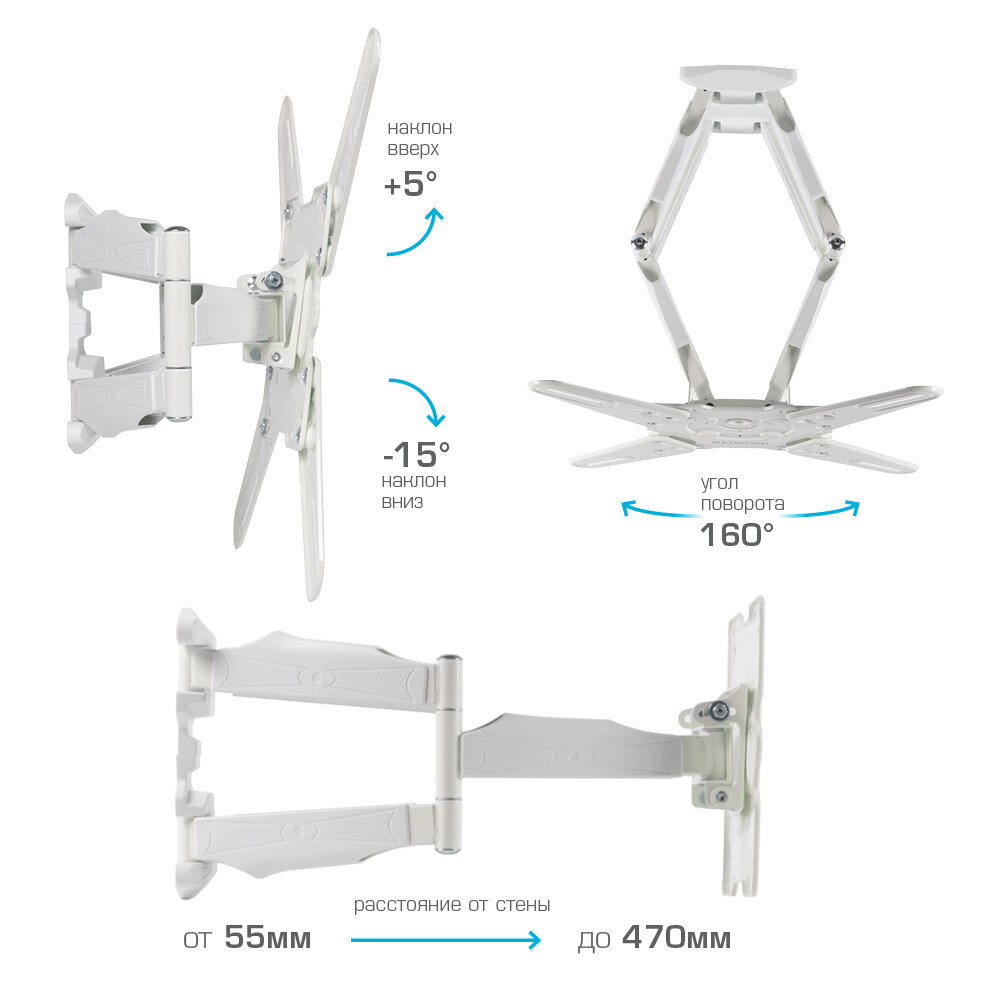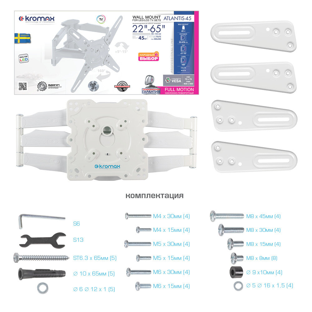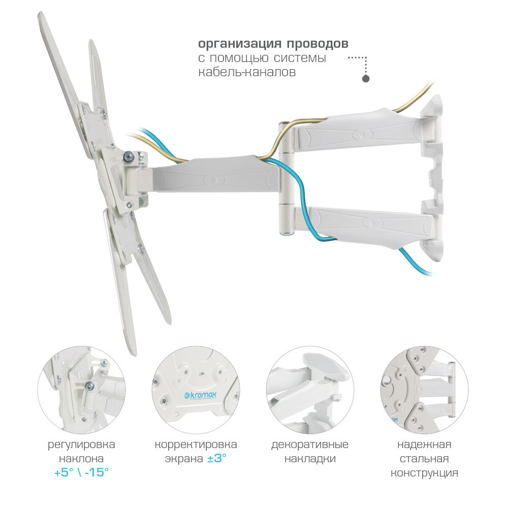Кронштейн Kromax ATLANTIS-45 white, наклонно-поворотный, 22"-65" интересное: