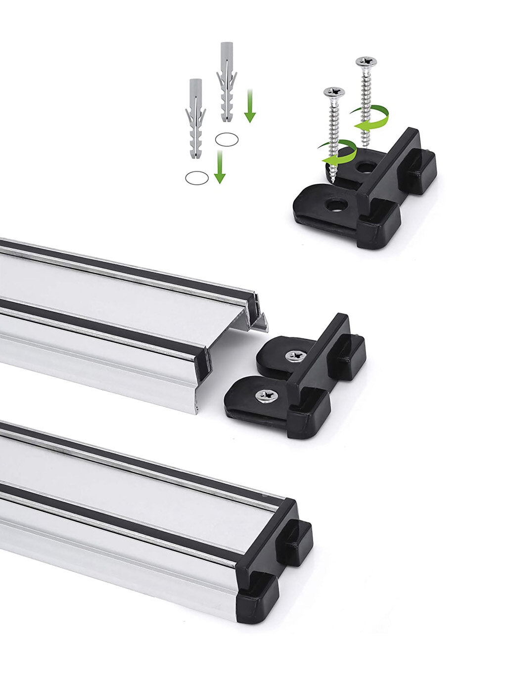 | Плюсы: | Изготовлен из алюминия, скрытое крепление к стене, шурупы и добели в комплекте. |