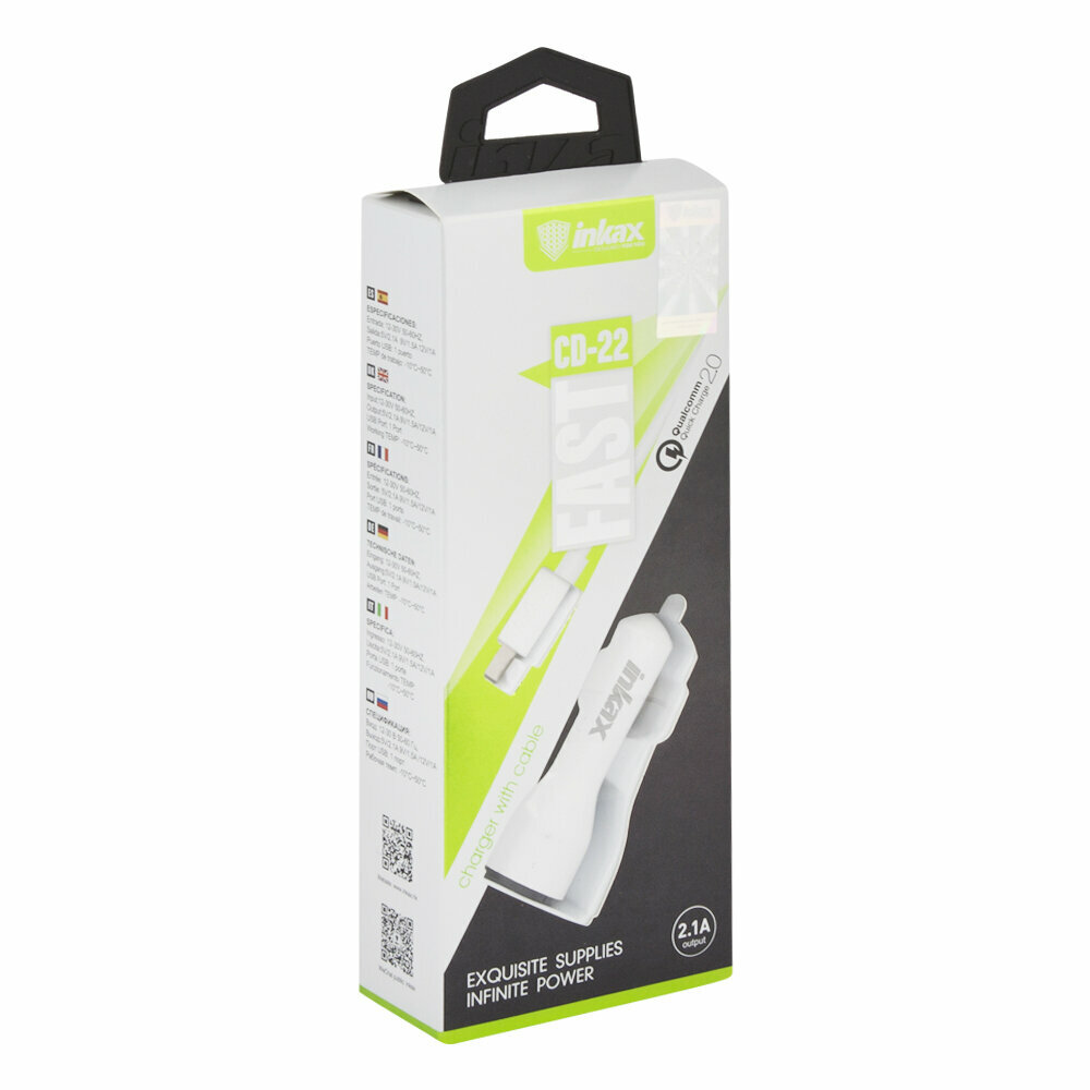 Купить Автомобильное зарядное устройство inkax CD-22, USB разъем, быстрая зарядка QC 2.0, c кабелем Type-C, 2.1А, 12Вт, белый